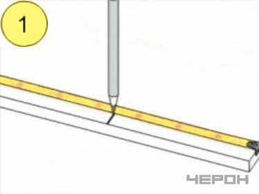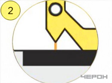2. Приложите мебельный кондуктор, совместив носик с отметкой на детали.