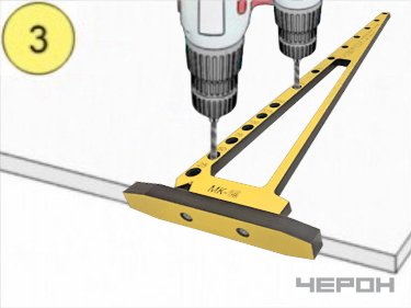 - Кондуктор применим для установки полкодержателей и штоков эксцентриковых стяжек, а так же мебельных направляющих.