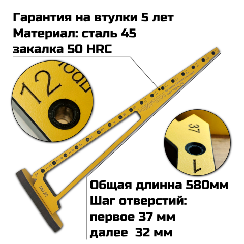 Служит для сверления отверстий в плоскости с шагом 32 мм, диаметр втулки 5 мм. Подходит для установки полкодержателей.
