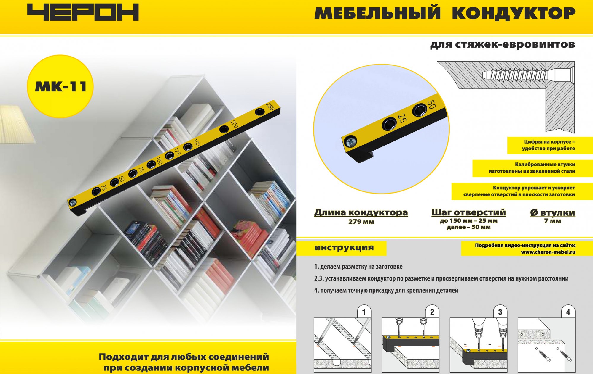 - Черон МК-11 — прямой мебельный кондуктор для присадки в торец
