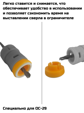 - Позволяет быстро изменять отступ без снятия ограничителя со сверла
