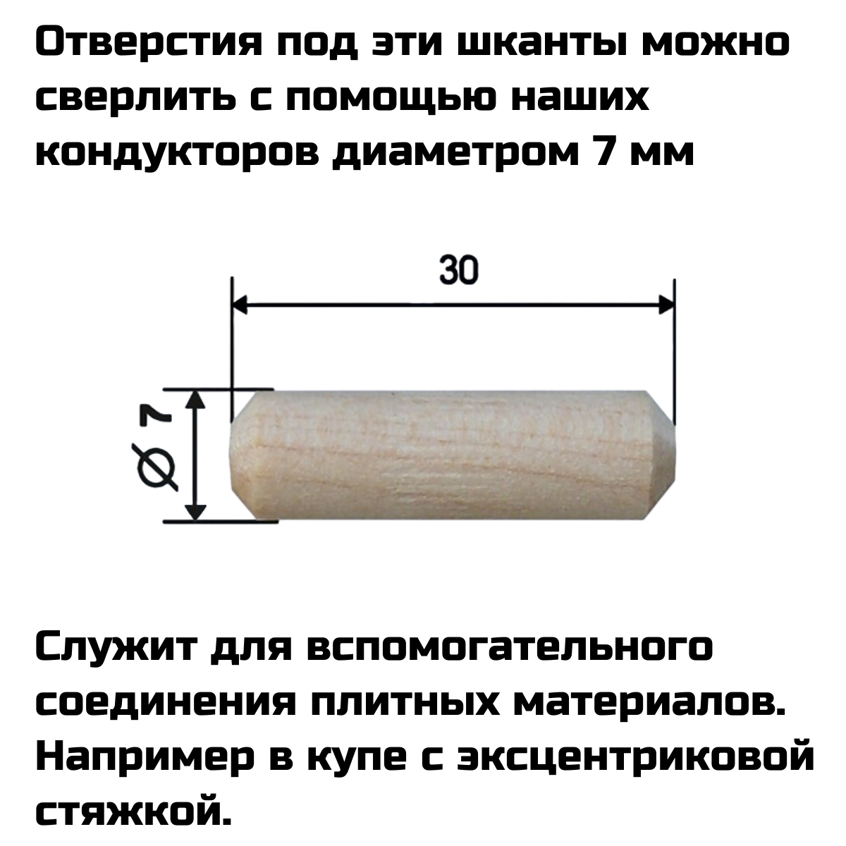 Шкант 7х30 (50шт) Отверстия под эти шканты можно сверлить с помощью наших кондукторов Ø7мм.