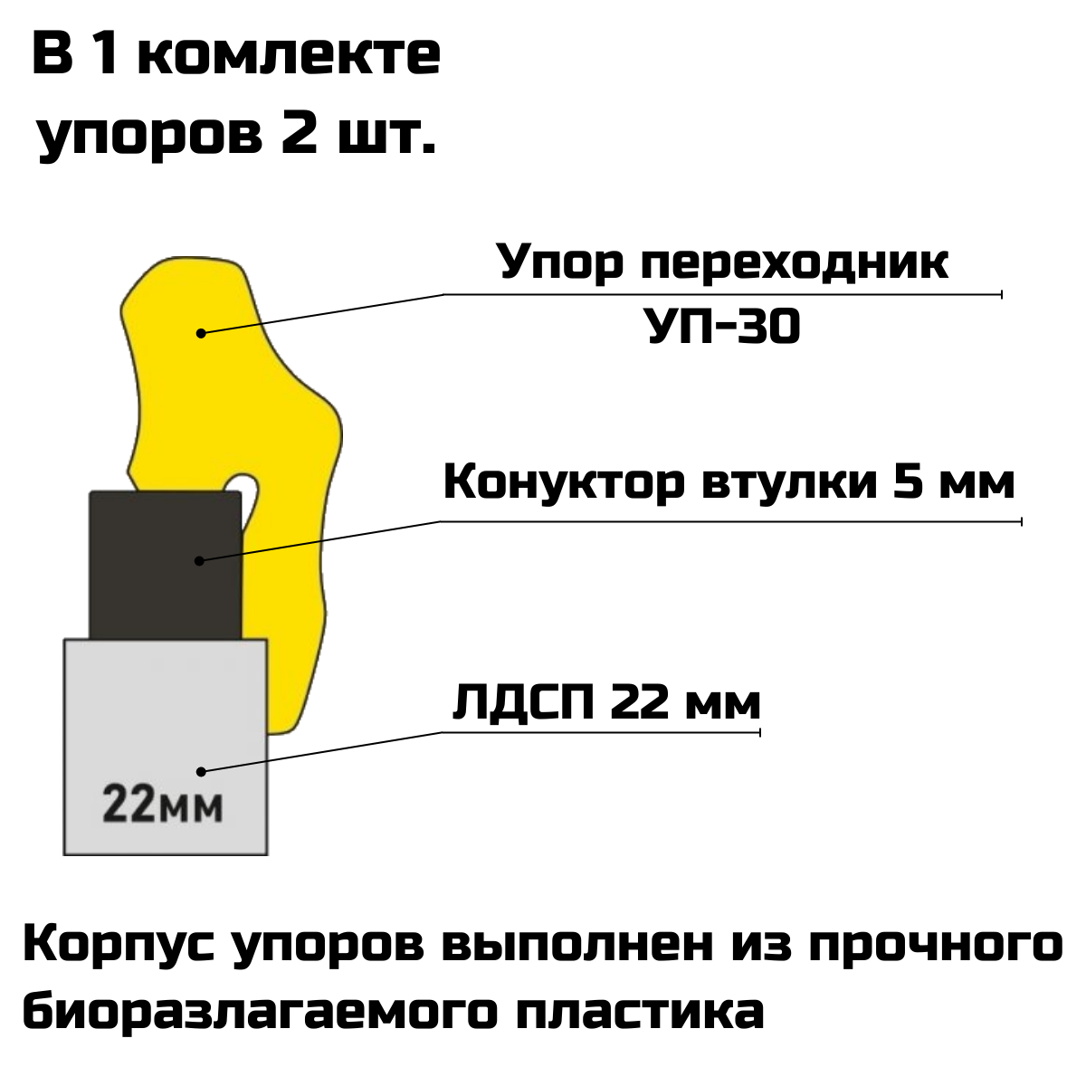 Служит для расширения стандартного кондуктора МК (16 мм) с втулкой 5 мм до 22 мм. В 1-м комплекте упоров 2шт.